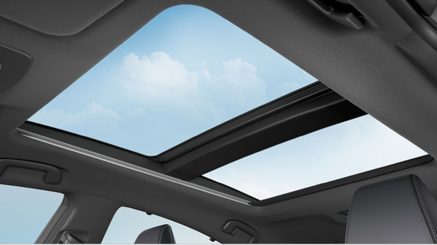 Cửa sổ trời mở rộng tối đa, mang ánh sáng tự nhiên vào không gian xe